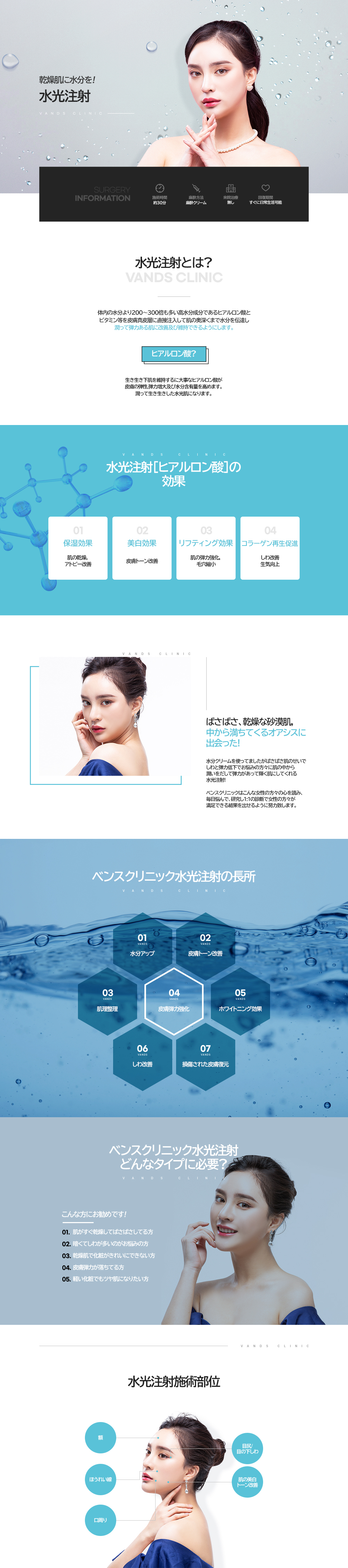 乾燥してパサついたお肌に ヒアルロン酸を注射で真皮層に直接注入することで、水分不足の肌にうるおいを与え、みずみずしくハリのあるお肌が期待できます。